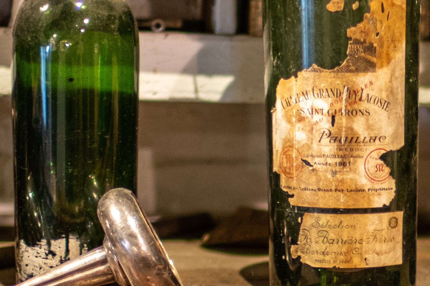 On the right is the old office containing ledgers dating back many decades, and beyond that the cooperage where there are tools to repair barrels, tools to put corks into bottles, tools to decant and filter. Dusty shelves and old tools from a different time.